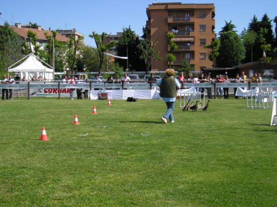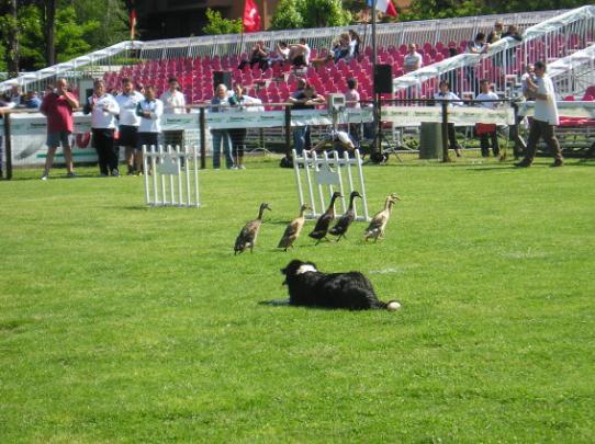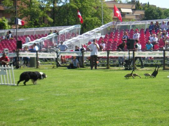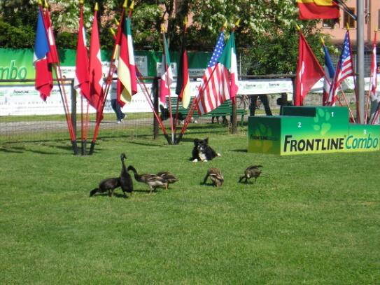 Schafe hüten ! Das wäre eigendlich der Lebenssinn eines Border Collies ! Hier in Monza waren es aus Organisatorischen Gründen fünf Laufenten . |