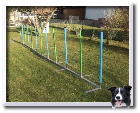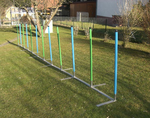 Slalom per Agility 12 paletti in legno, regolamentare per prove ufficiali secondo F.C.I. realizzato in acciaio INOX.